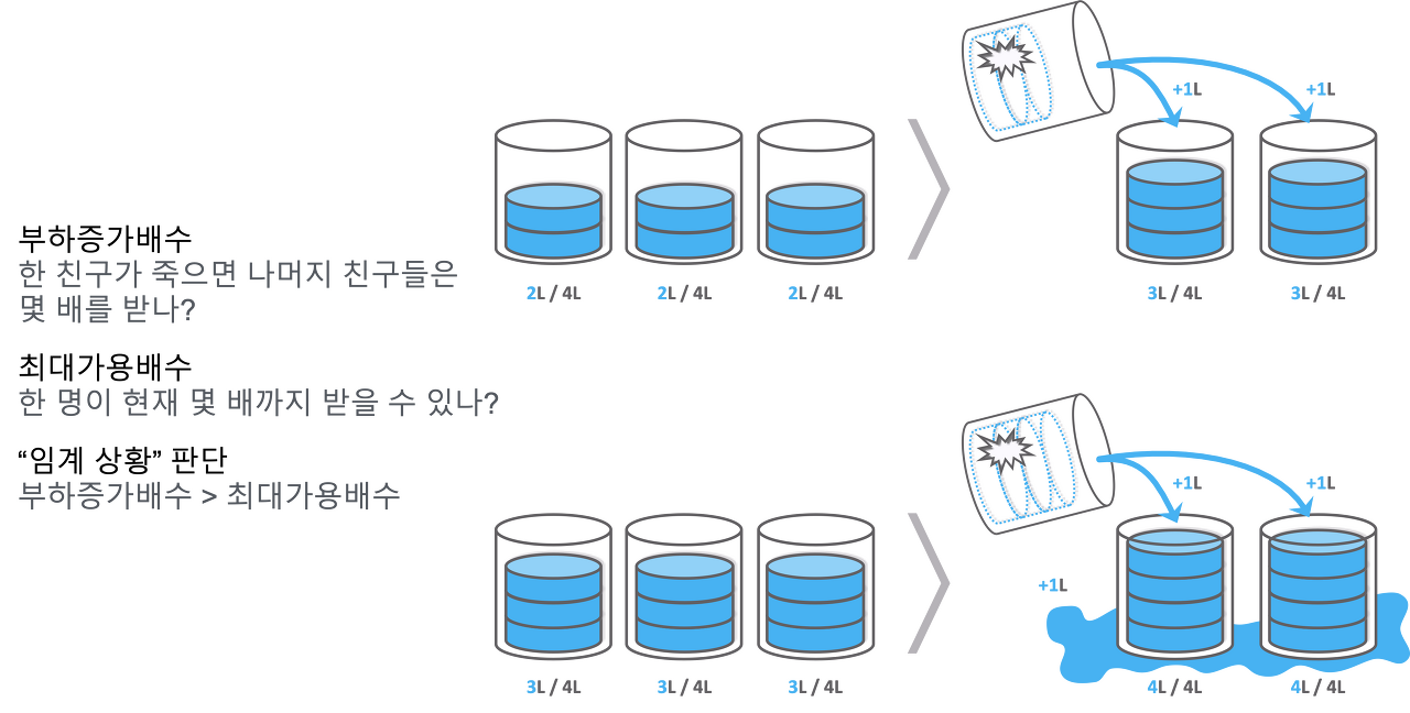 자세한 가용량 공식과 적용 방법은 네이버 검색 블로그 - 지진에도 흔들리지 않는 네이버 검색 시스템 2편에서 확인할 수 있다.