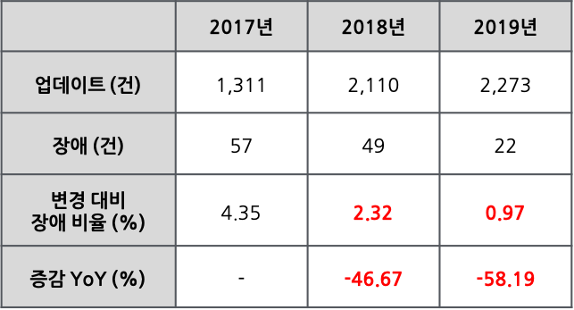 그림 8 최근 네이버 검색에서는 장애 발생 빈도가 매년 절반 수준으로 떨어지고 있다.