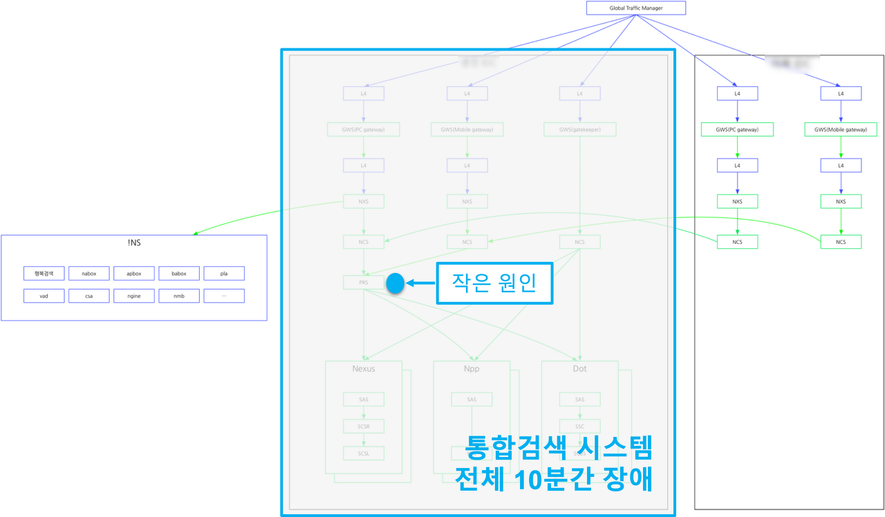 - 두 번째, 경쟁사의 검색 서비스가 동작하지 않아 트래픽이 모두 네이버로 집중되는 상황이다.