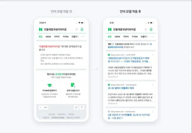 네이버는 검색엔진에 초거대 AI 하이퍼클로바를 적용해, 사용자가 오타를 입력하거나 맞춤법을 잘못 입력하는 경우, 잘못 알고 있는 검색어를 입력한 경우 등에 올바른 단어로 전환해 검색해 주거나 적절한 검색어를 추천해 주는 기능을 추가했다. /네이버 제공