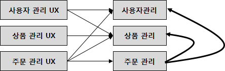 서비스 경계는 구문 또는 도메인(업무)의 경계를 따른다. 예를 들어 사용자 관리, 상품 관리, 주문 관리와 같은 각 업무 별로 서비스를 나눠서 정의한다. 사용자/상품 관리 처럼 여러개의 업무를 동시에 하나의 서비스로 섞어서 정의하지 않는다.