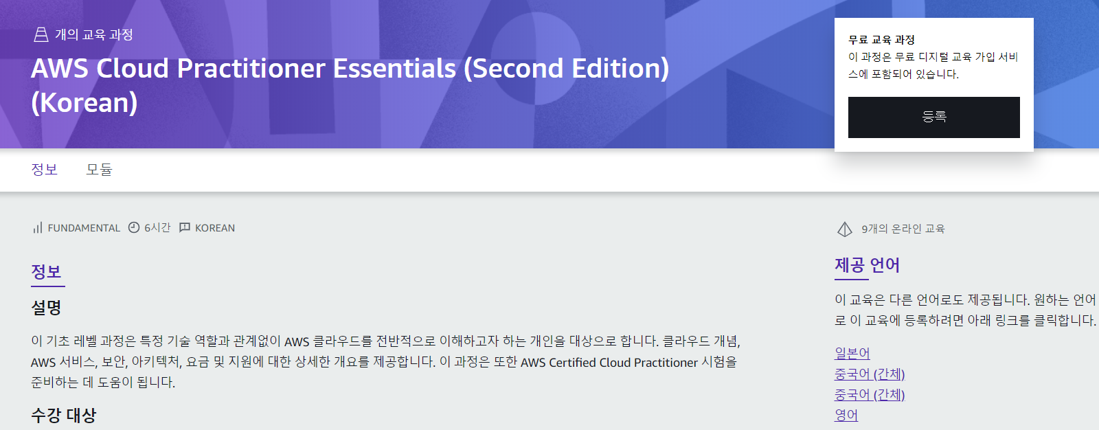 => AWS Cloud Practitioner Essentials (Digital)(Korean)
