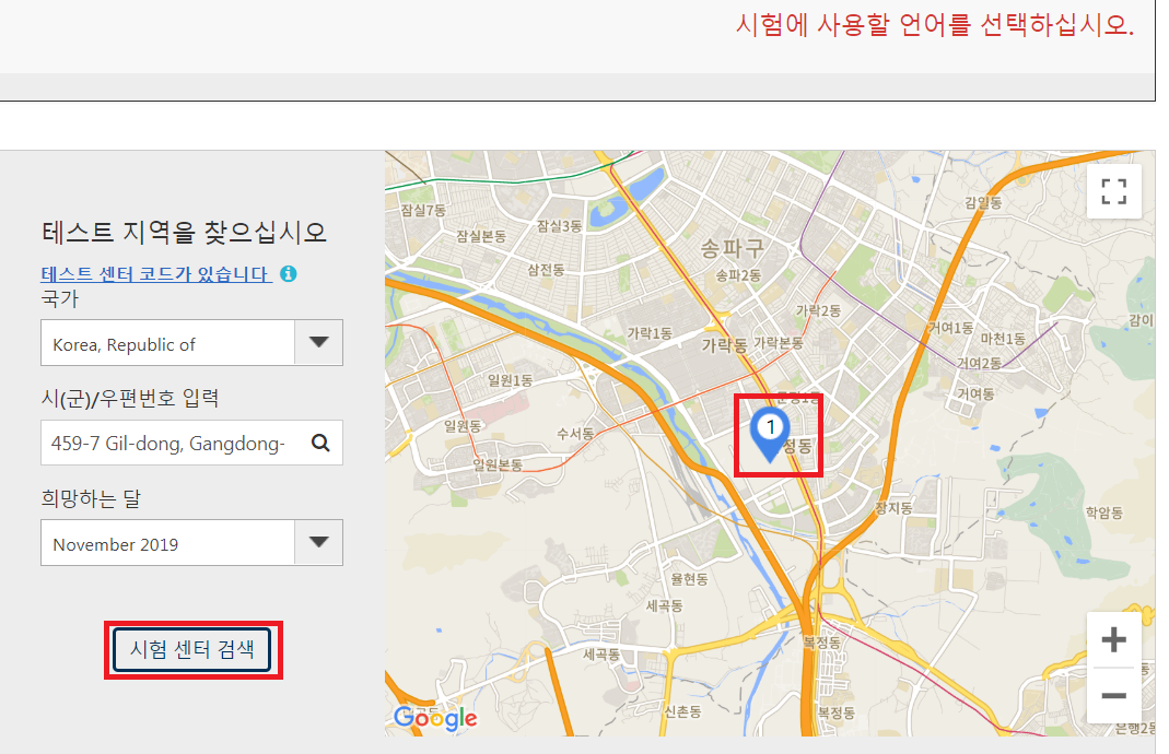 ☞ "시험 장소" 선택