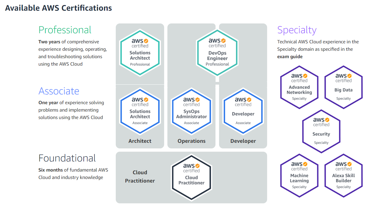 출처 : AWS 공식 홈페이지( https://aws.amazon.com/ko/certification/)