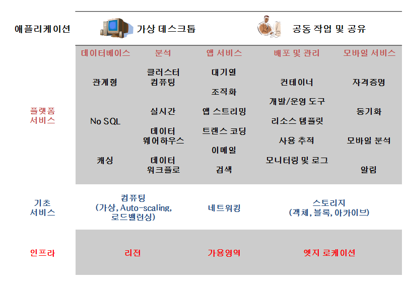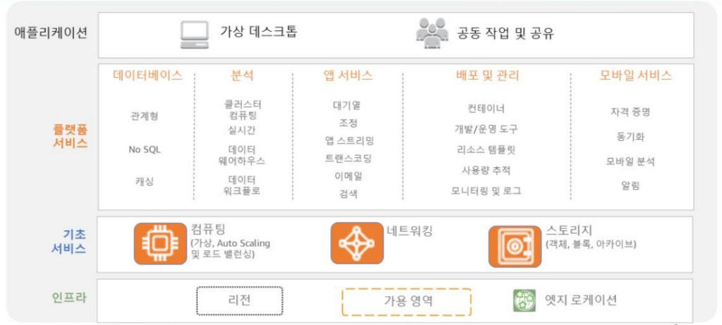 - AWS, 네이버플랫폼 과 같은 인프라스트럭쳐를 제공하는 서비스.