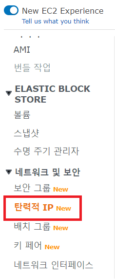 ▶ 1. 네트워크 및 보안 >> 탄력적 IP (Elastic IP) 클릭