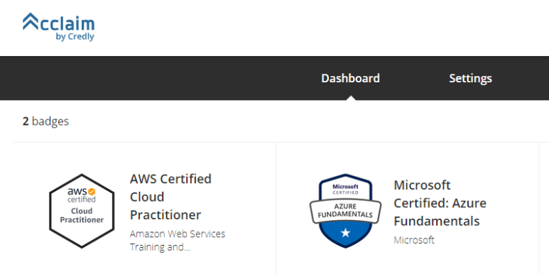 Acclaim에 가면 자격증이 이제 2개가 보이는데