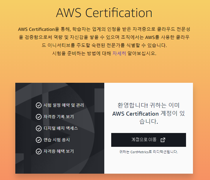 (AWS Certification 가입을 안 했다면 추가 진행이 필요하다)