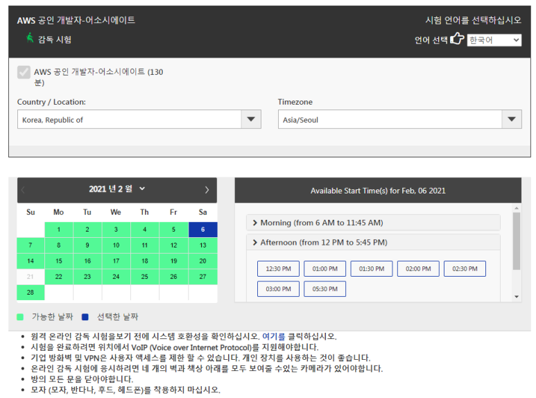 이제 시험 날짜가 되어 30분 전에 AWS Certificate 사이트 접속 후