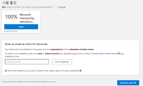 그래도 애저 AZ-900 자격증은 Azure Virtual Training Day 교육 듣고 무료로 봤지만 (아래 URL 참고)