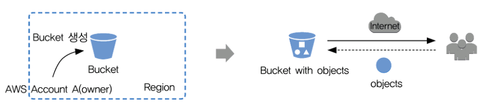 S3에는 버킷(Bucket)과 객체(Object)로 불리는 단위가 있다.