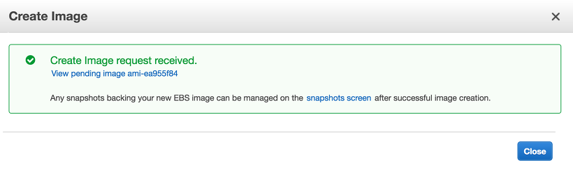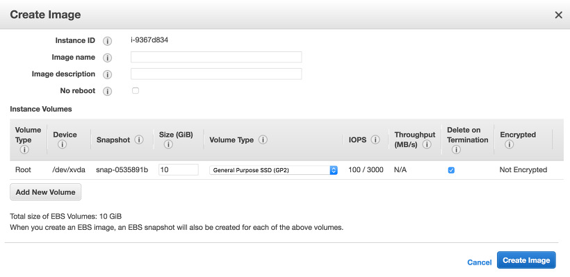 - 이미지 이름, 설명을 적고, Create Image 버튼을 선택합니다.
