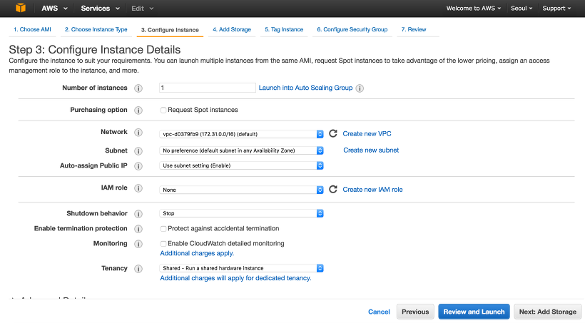 - 생성하고자 하는 인스턴스 개수, 네트워크 정보 등을 설정합니다.
