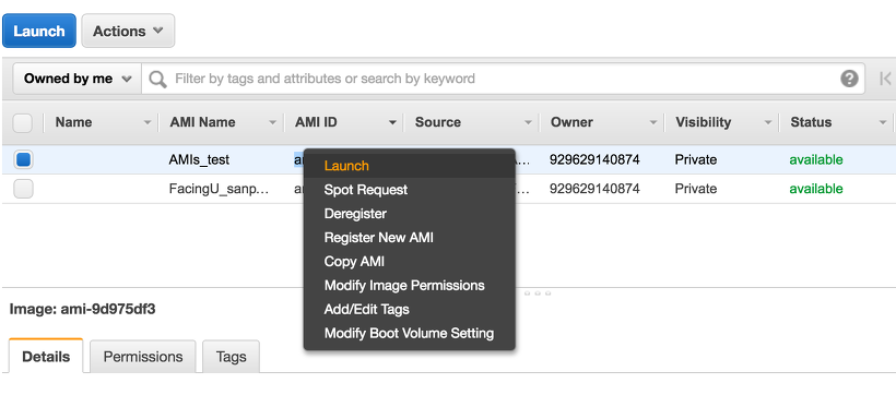 - 생성한 이미지를 우클릭하고, Launch 를 선택합니다.