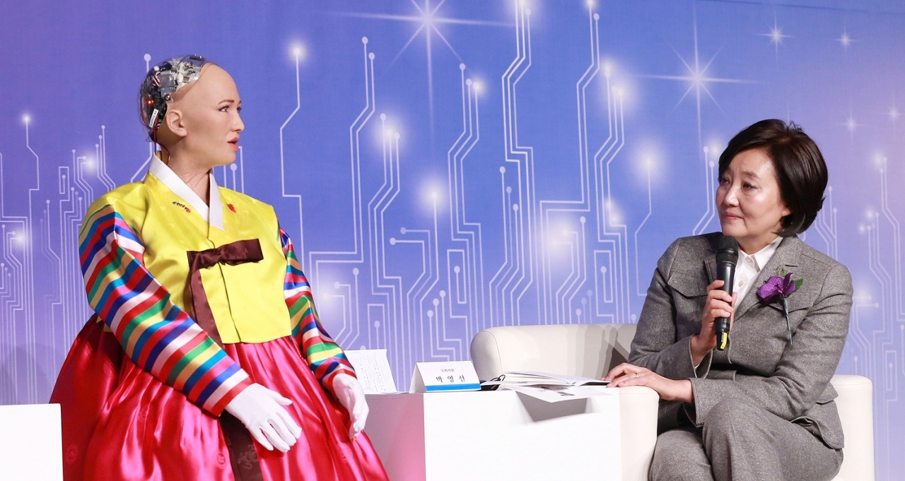 당시 박영선 의원(현 중기부 장관)과 핸슨 로보틱스에서 만든 로봇 ‘소피아’가 대담을 나누는 자리였다. 박영선 의원은 “로봇으로선 최초로 시민권을 받은 AI로봇 소피아를 초청해 4차 산업혁명에 따른 미래사회 변화에 대해 직접 묻고 답변을 듣기 위해 자리를 마련했다”면서 소피아와 1:1 대담을 진행했다.