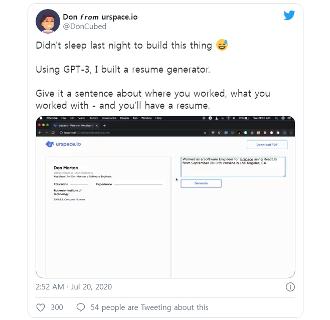 GPT-3는 OpenAI가 만든 언어 AI의 이름입니다. OpenAI가 5월 말에 논문(Language Models are Few-Shot Learners-다운)을 공개하고, GPT-3를 이용한 API를 클로즈 베타(보기)로 공개한 이후, 서구권의 SNS와 미디어는 그야말로 난리가 났다. 주류 미디어는 물론, 머신러닝과 거리가 먼 일반인들까지 GPT-3에 대해 얘기한다. 한마디로 바이럴 폭탄이 터진 것이다.
