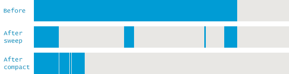 Compact: Sweep 과정에 의해 삭제되면 메모리 단편화가 발생하는데, Compact를 통해 빈자리들을 채워줌