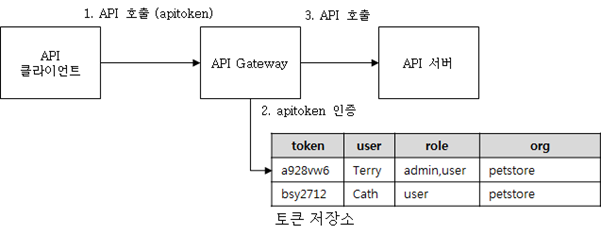 Apitoken이 발급되었으면, 클라이언트는 이 apitoken을 이용하여 API를 호출하는데, 이 때 API 게이트웨이는 apitoken을 검증함으로써 API 호출을 승인할지 여부를 결정한다.