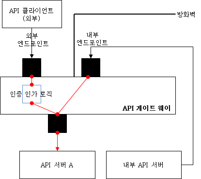 내부 API 엔드포인트는 내부 IP를 가지도록 하고, 방화벽 안에서만 오픈하되 별도의 인증/인가 로직을 거치지 않고 내부 서버들이 API를 호출하는데 사용할 수 있도록 한다.