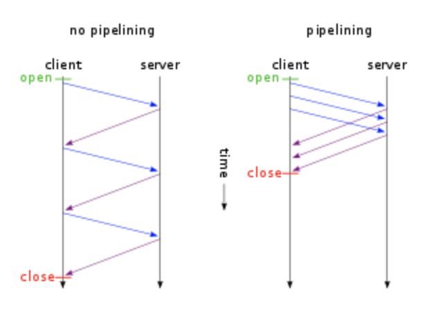 - HTTP 1.1에서는 다수의 HTTP Request들이 각각의 서버 소켓에 Write 된 후, Browser는 각 Request들에 대한 Response들을 순차적으로 기다리는 문제를 해결하기 위해 여러 요청들에 대한 응답 처리를 뒤로 미루는 방법을 사용한다.