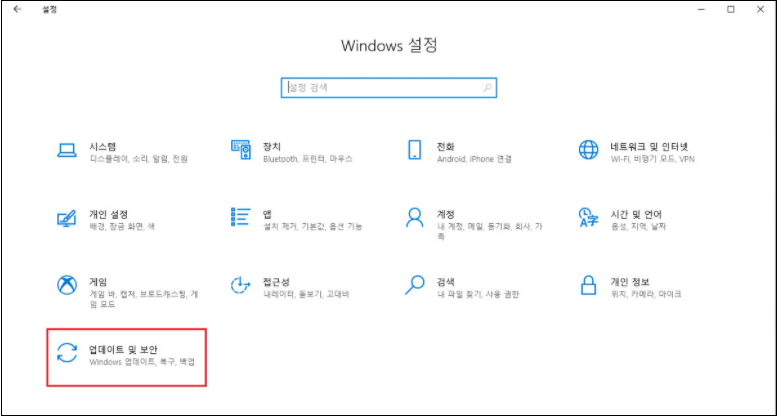 1. 우선 windows 설정에서 업데이트 보안탭을 선택하시기 바랍니다.