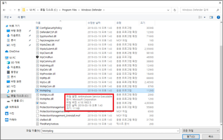*파일 설명에 antimalware service executable이 써있는 것을 확인하실 수 있습니다.